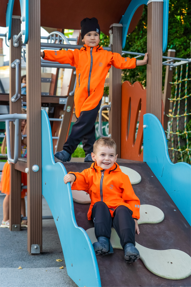Этот комбинезон из ткани софтшелл идеально подходит для моросящего дождя в городе, веселых прогулок в ветреную погоду и активных игр на природе. Его можно носить во время катания на горке, прыжков по лужам или увлекательных походов по