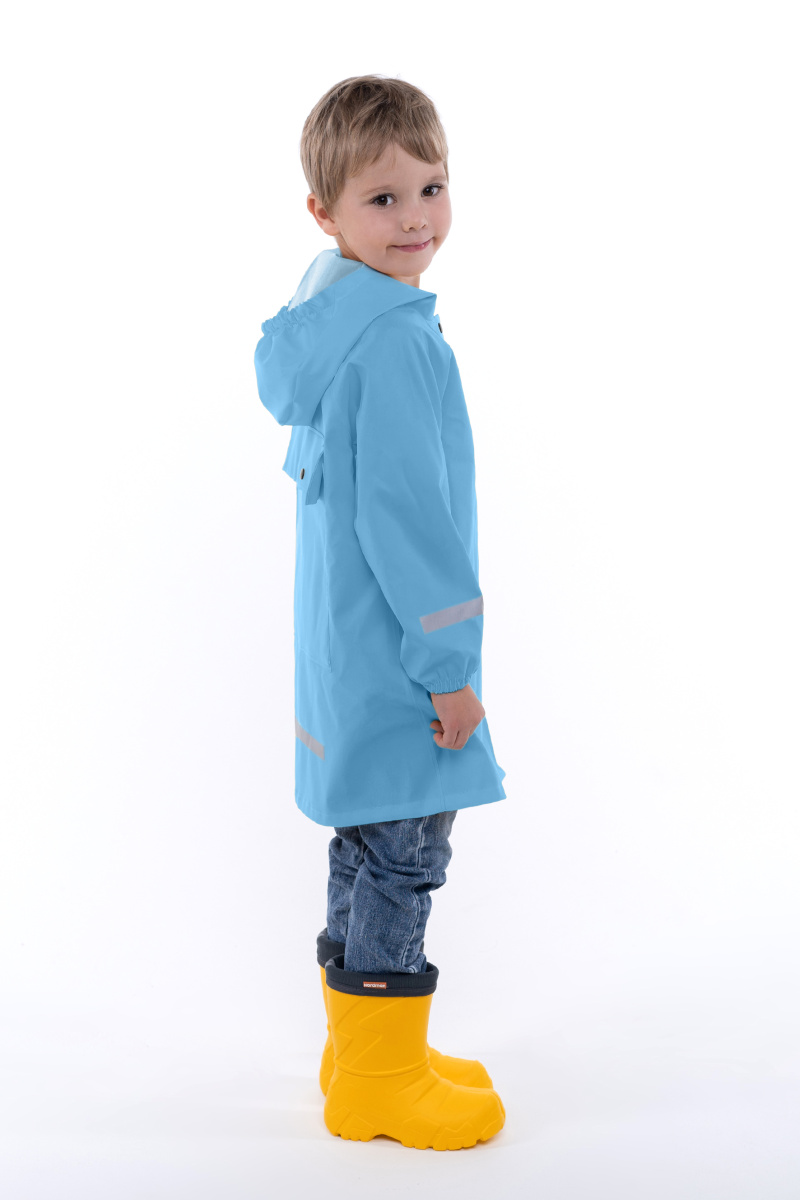 Детский плащ из ПВХ с проклеенными швами – надежная защита от дождя, которая не пропускает влагу и сохраняет комфорт даже при активном движении. Прямой крой и удлиненный силуэт дарят свободу и прикрывают ножки, а застежка на кнопках позволяет быстро надеть или снять изделие. Капюшон защищает голову от капель, светоотражающие элементы делают ребенка заметнее в условиях недостаточного освещения, а функциональный карман на спине одновременно служит местом хранения необходимых мелочей и позволяет компактно убрать плащ при смене погоды.